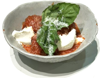 Three meatballs in Johnny's marinara sauce with ricotta cheese, basil, topped with pecorino romano