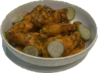 #5 BUFFALO CHICKEN PIE mozzarella blend, fermented red chili buffalo sauce, pickles, blue cheese drizzle, pecorino romano, EVOO 24